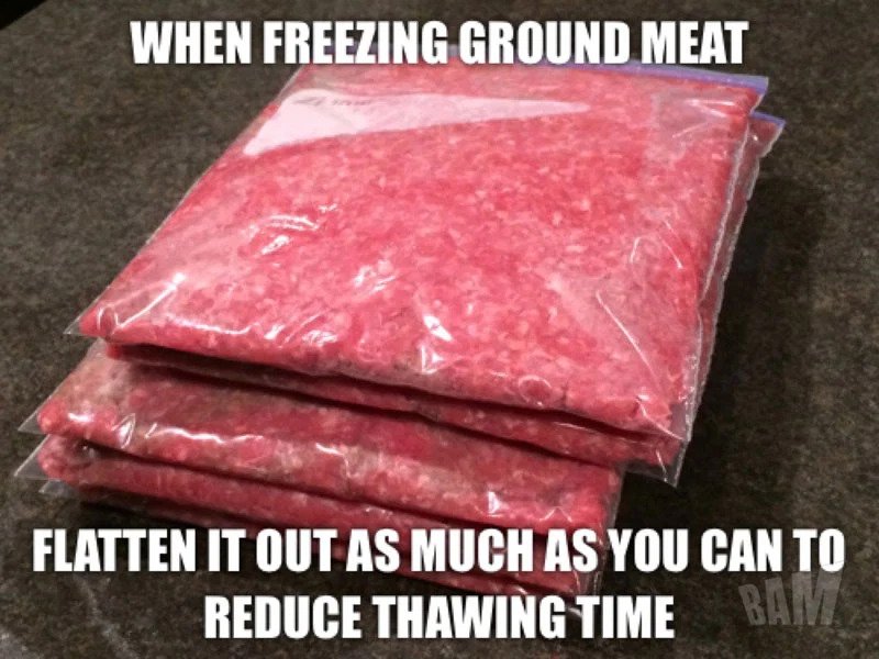 Flattened meat not only saves space but also reduces thawing times. If you prefer cooking your meat right when you need it, consider adopting this simple life hack!